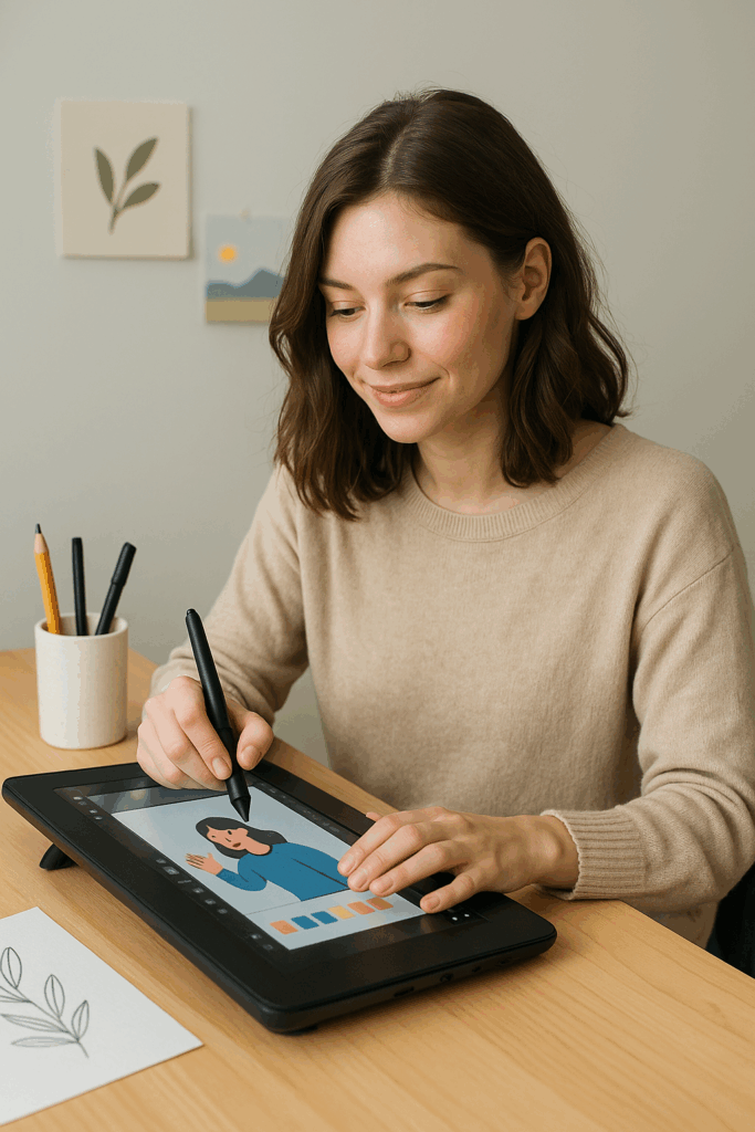 โข ํ์ ๋๊ตฌ โ ์์ดํจ๋ยท์์ฝค ํ๋ธ๋ฆฟ, Adobe Photoshop, Illustrator, Clip Studio ๋ฑ